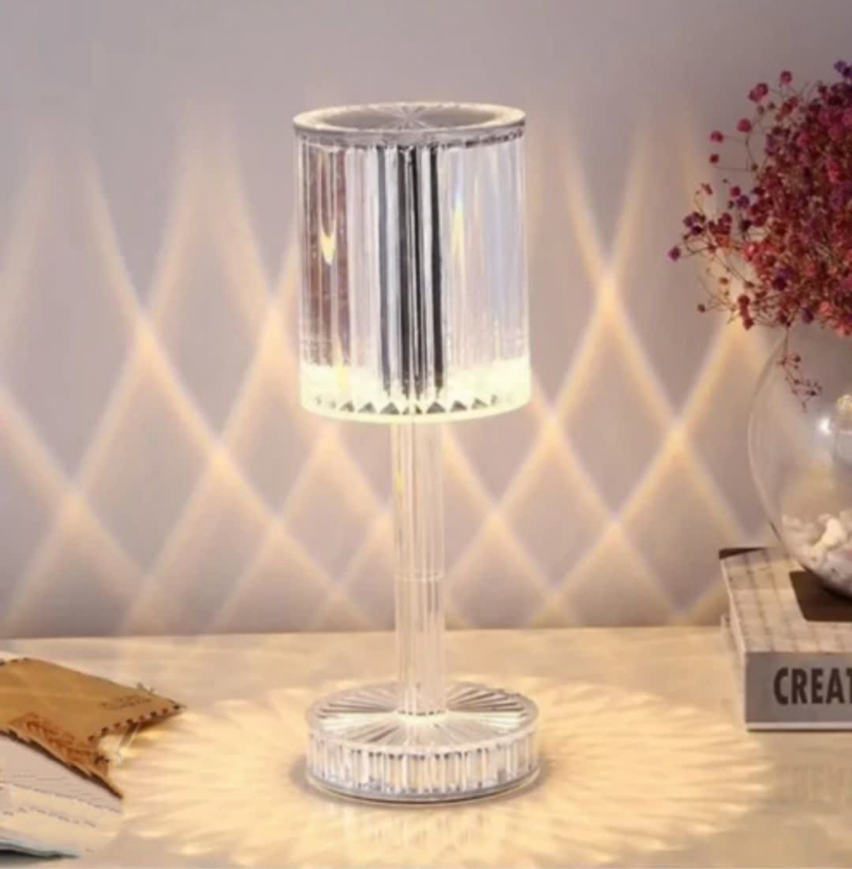 آباژورالماسی رومیزی لمسی شارژی | نور ملایم و طراحی دکوراتیو