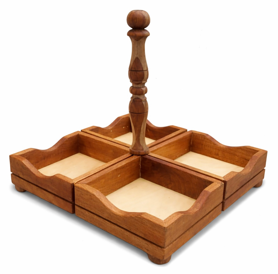 خرید آنلاین اردوخوری چوبی گردو دست‌ساز با چهار بخش مجزا برای آجیل، خشکبار و تنقلات